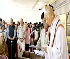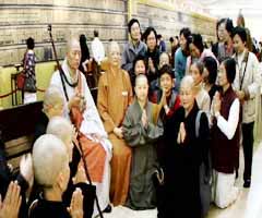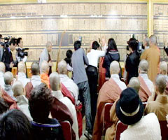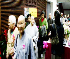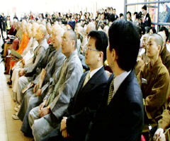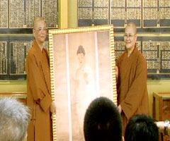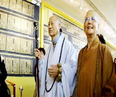 佛身滿法界,無盡菩薩行 時間如同一把利刃,一刀一鑿,不經意間,在人們的臉龐留下一紋一紋歲月的風霜痕跡。在孤冷的山峰頂上獨立,現代韓國高僧──元應大師,從一個年輕入道的僧青年,不畏辛苦與孤寂,在慶尚南道咸陽郡的智異山度過他雕佛寫經的修行歲月,完成了佇立山巔的華嚴佛世界供世人景仰禮拜,也留下一部八十卷金泥手書《華嚴經》,金燦的經文,照亮求了求道者昏朦的心。 元應大師從求道的那一天起,仿彿就像從《華嚴經》中示現人間的善財童子,欲探求菩薩道的修行法門,永遠懷抱著無悔無疑、純真清淨之心,踏著年輕善財童子求法之路,也展開他的尋法路途。 元應大師可說現代韓國頗具傳奇的一位修行僧。四十六年前他來到深入雲嶺的智異山,便留在山中,重建因在韓戰中遭受戰火毀損的五百年古剎碧松寺,更遠上山嶺,將山中堅硬無比的巨大岩石雕成石窟佛像,成就現今的瑞岩精舍;他兩度書寫八十卷《華嚴經》,精進抄經,毅力無摧,讓他的視力飽受瀕臨失明的痛苦。但無論山中歲月是如何地既孤冷又清寂,元應大師仍然一如以往的初心,做他想做的事,該做的事。 ◎父親為元應大師創造求道的因緣 如今在韓國佛教界建立一代大師的地位,這多虧元應大師的父親為他創造進入佛門的因緣。在韓國的歷史,二十世紀初韓國被日本併吞,而結束朝鮮王朝,1910年進入日本殖民統治時代。當時元應大師的父親因為反日本帝國主義,挺身主導學生罷課活動,因為此事牽連過大,導致日後無法順利在社會上發展,後來為了學中醫而進入山寺。元應大師說:「父親原本是單純為學中醫而到佛寺,但是在跟和尚們交流的過程中,得知了過去從沒想過的佛法世界的存在。」他的父親因此深入佛法修行,其發心精進還獲得滿空禪師發給的冬安居證書、法門證書,百草禪師發給的法門證書。 一直到現在,七十三歲高齡的元應大師還親自在幹活,至今也沒有侍者隨侍身邊,一個人在墨黑的夜色中走向法堂,在石窟法堂誦經,誦經聲迴盪在法堂山間;他也在爐灶下親手烤糕餅,分享給他座下弟子。 一九六一年的四月初春,元應大師來到碧松寺,當時的季節櫻花、杏花盛開,山谷中開滿各種花兒,一種故鄉的熟悉感紛然湧上,元應大師說:「我感受到這個地方跟我有很深的因緣。」四十六年前的碧松寺殘破得有如廢墟一般,僅剩一間破舊的茅蘆,也沒有什麼人到這深山中來參拜,那時要重建道場是十分不容易的。 重建佛寺最當務之急就是該如何建造供奉佛陀的法堂,但重建所需的木材和搬運都需要大筆經費,大師認為自己是為了斷除俗緣才到這深山老林中修行,怎能再向施主化緣經費呢?因此他利用山上的柿樹所結的果實,製作柿餅販售,漸漸地,經過四、五年人手逐漸增加了。元應大師的大弟子靈珠法師回憶當時艱辛的日子,寺院沒有糧食,寺裡的法師就把山裡產的一籃子小小的土蘋果拿到山下市集去賣,再換一些大麥米回來,摻些地瓜、馬鈴薯或玉米煮食以果腹。 ◎渡一切眾生成就佛陀道場 在這個充滿怨仇的地方,有許多人犧牲,在這裡的無主孤魂有許多悲歎,是那麼地徬徨,大師自問:「如果『度一切眾生』是佛弟子的義務,那我能為這些懷怨的孤魂做些什麼呢?」「開悟是從哪裡來?又將從何處去呢?」 偶然間,元應大師走進山的更深處,到了一處滿是石頭的地方,從這時開始,石雕瑞岩精舍的佛事就此展開,因為大師發現了建造佛陀道場、雕刻神聖佛像的淨地,他發願在這裡為無數無主孤魂尋求離苦得樂。這個發願成就了現今瑞岩精舍瑞岩洞。 大師規劃了整個道場道場的布置和各尊佛像的位置,他親自畫底圖,找來石工雕刻,用浮雕的方式將佛的莊嚴呈現在自然天成的岩石上。 入口處一入眼是高大的四大天王,彷佛在鎮守著這由巨大摩崖佛像所形成的寺院;山腰石洞中的巨大空間就雕成石窟法堂,隨著天然石壁的凹凸直接雕鑿,刻出法堂的四壁與頂蓬,法堂的正中央坐著阿彌陀佛,一面石壁上雕刻了釋迦牟尼佛的十大弟子,整個法堂是個巨大的佛陀世界。 這些山中岩石都是億萬年來就佇立於此,雕刻工程的艱難自不在話下。巨型的天然岩石無法搬動,要雕刻巨石的下方就要先挖土,要雕刻上方則要搭梯架;整個工程都沒有用到電動鑽孔機,都是用手一鑿一鑿刻苦完成。這些雕像經歷歲月風霜的洗禮,所以跟自然環境融為一體,就像是自然天成一般。 ◎用藝術參禪 金泥寫經 在佛教界,寫經是傳統的一種修行方式。為了抄寫最完整的《華嚴經》,元應大師首先找來各個重要版本的華嚴經,一一對照這些版本的每一個字,辨別寫錯或是脫落的地方,花了 一段時間整理好《華嚴經》,他方才進行寫經。 《華嚴經》是佛教典籍中相當大部的經典,總字數有六十萬字,如果以一天寫一百個字,需要花十六年才能完,這個抄寫心願的確不是這麼容易就能完成的。 十六年是多麼長的時間,需要多大的專注與毅力才能完成啊!一開始他抄寫的第一部《華嚴經》是用墨筆書寫,因為花費眼力過鉅,在抄寫工作進行到第五年時,眼睛就出了問題。常常眼睛會很疼痛,甚至痛到沒法看電視,遇有重要新聞時,就只能閉著眼睛聽新聞。因為眼睛的關係,實在太痛時,不得不暫停抄寫,休息個一、二天,就這樣在眼疾的困擾裡寫寫停停,用了十年的時間終於完成,但可喜的是,居然比預估的十六年快了三分之一的時間。 第二次寫經,元應大