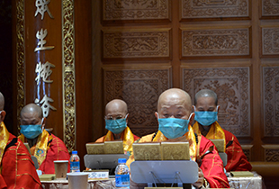 事上天下照法師、台南市佛教護僧協會副理事長上惟下心法師等長老、長老尼、法師,嚴淨壇場灑淨。長老、長老尼、法師領眾恭誦「金光明懺齋天科儀」,讚歎佛法僧三寶與護世諸天功德。並施設淨食,供養十方三寶、諸天及其隨從。希冀以此功勳祈願世界和平、四時無災、風調雨順、經濟繁榮、國泰民安。