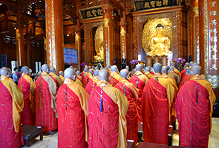回向。吉祥午宴前,六龜大行寺住持上傳下燈長老、高雄法興禪寺住持上聖下雄長老、中華佛教護僧協會理事長上圓下塵法師代表僧信,至誠叩請賓頭盧頗羅墮尊者慈悲受供,為末法人作褔田。臨齋儀式後,備辦「三德六味」的甘美飲食,來供養諸佛及僧眾,也讓諸佛菩薩和僧伽大眾生起歡喜之心。